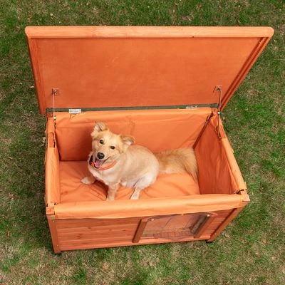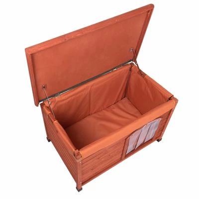 Az időjárásálló lapostetős kutyaház lakozott nyársfenyőfából készül, s teteje teljes egészében zöld homokszórású bitumen-kátránypapírral fedett. A Woody lapostetős kutyaház tökéletes szálláshelyet kínál kutyájának. Mivel a tető teljesen felhajtható, a kutyaház belseje nagyon gyorsan és kényelmesen tisztítható. A tetőtúlnyúlások óvják a kutyaház faanyagát és bejáratát az esőtől.