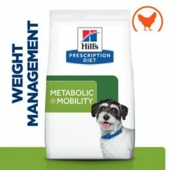 A Hill’s Prescription Diet Metabolic + Mobility Weight Management Mini ízletes csirkével készül, ami értékes fehérjéket tartalmaz. Ezenkívül megnövelt mennyiségben tartalmaz omega-3 zsírsavat és E-vitamint, melyek támogathatják a normál ízületi funkciókat. Ez a száraztáp teljesértékű receptúra alapján készül, valamint gazdag a különböző létszükségletű anyagokban – tökéletes mindennapi étkezésként.