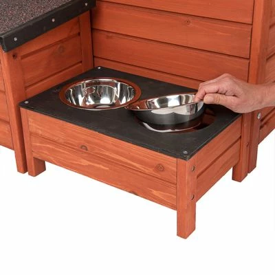 A fából készült kutyaházat jól átgondolt kialakítás jellemzi – praktikus extrákkal. A Jackson kutyaházhoz a tényleges házikó mellé egy fedett tárolódoboz is csatlakoztatható, amelyben például eledelt, játékokat, pórázt vagy más apróságokat tárolhat. Ezen kívül még egy megemelt pozíciójú etetőhely is adott két rozsdamentes acél etetőtállal, ez pedig lehetővé teszi, hogy kedvence kényelmesen fogyassza el eledelét.