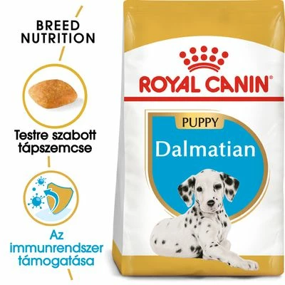 A Royal Canin Dalmatian Puppy tápot speciálisan a kölyök dalmatáknak fejlesztették ki, azok 15 hónapos koráig.
