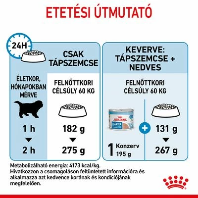 - Teljes értékű eledel óriás testű szukáknak (> 45 kg) és kölykeiknek a szoptatás időszaka alatt (legfeljebb 2 hónapos korig)