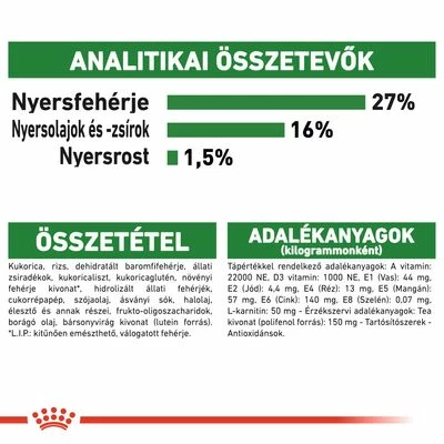 - Kiváló elfogadási arány: a gondosan kiválasztott tápanyagok és természetes aroma maximális elfogadási rátáról gondoskodnak. A krokett különleges összetétele, alakja még a legválogatósabb kutya táplálékfelvételét is megkönnyíti.
