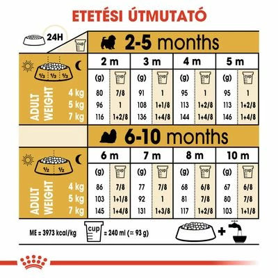 - Gyors növekedés: az intenzív növekedési időszak alatt a kiskutyának optimális energia- és fehérje-, valamint kiegyensúlyozott kalcium- és foszforellátásra van szüksége